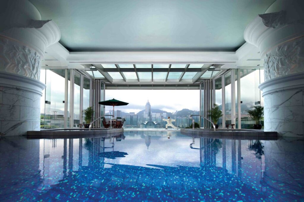 While many classic pools are outdoors, The Peninsula offers an indoor sanctuary that rivals them all. Located on the 8th floor, this pool is styled after a Roman bath, featuring classical columns, friezes, and statues. Through the floor-to-ceiling windows, swimmers are treated to a spectacular, uninterrupted view of the Victoria Harbour skyline. It is a regal escape from the bustle of the city below.