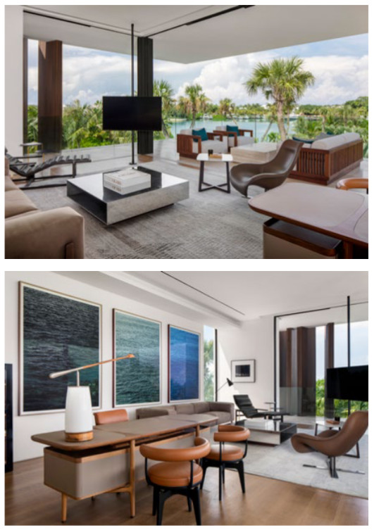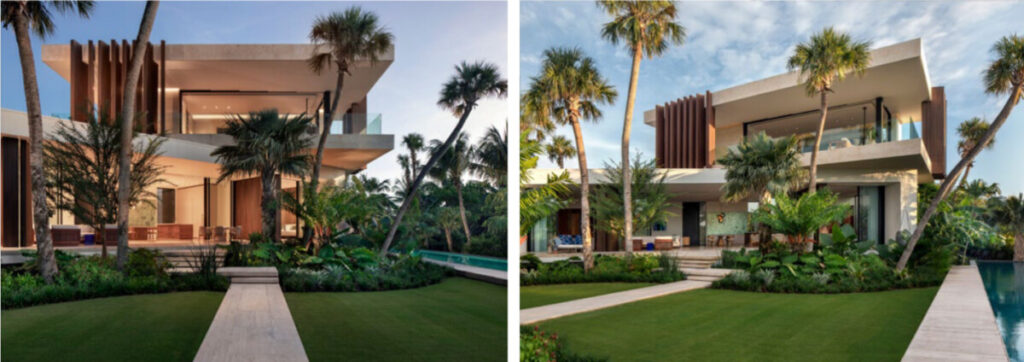 Landscape design by Raymond Jungles furthers the intimate connection between building and site. Gardens and courtyards function as outdoor rooms, planted with native species and interspersed with water features. These spaces are not merely ornamental but are spatially woven into the architecture to offer moments of retreat, transition, and reflection. The planting strategy is both ecologically responsive and resilient, supporting year-round growth in the humid, coastal climate.